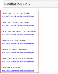 まずABAを購入すると上図のような会員サイトに招待されます。